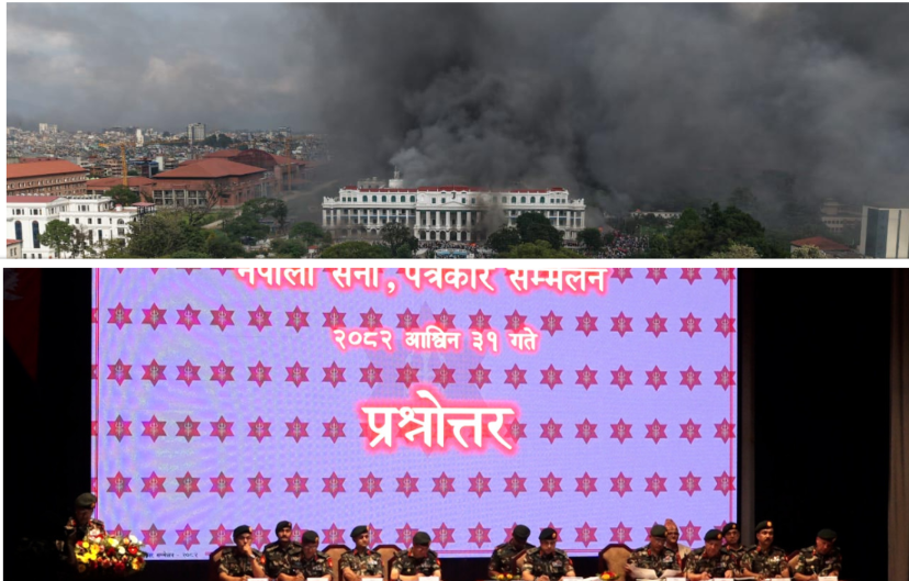 जेनजी आन्दोलन भएको एकमहिनापछि बोल्दै नेपाली सेनाले आक्रोशित भिड छिरेपछि सेनाले मानवीय सुरक्षालाई प्राथमिकता दिएको प्रष्ट पारेको हो । पत्रकार सम्मेलनमा उपरथी थापाले भने,“त्यसकारण समग्र घटनामा शान्तिसुरक्षा कायम गर्ने उद्देश्यका साथ नेपाली सेनाले आवश्यकता अनुसार पहल लिएको र मानवीय सुरक्षा भौतिक सुरक्षा भन्दा महत्वपूर्ण रहेको बुझाई यहाँहरुलाई अनुरोध गर्दछु ।”