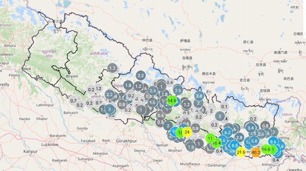 हाल कोशी, मधेश, बागमती, गण्डकी प्रदेशका धेरै स्थान र लुम्बिनी प्रदेशका केही स्थानमा हल्लादेखि मधयम वर्षा भइरहेको महाशाखाले जनाएको छ ।
