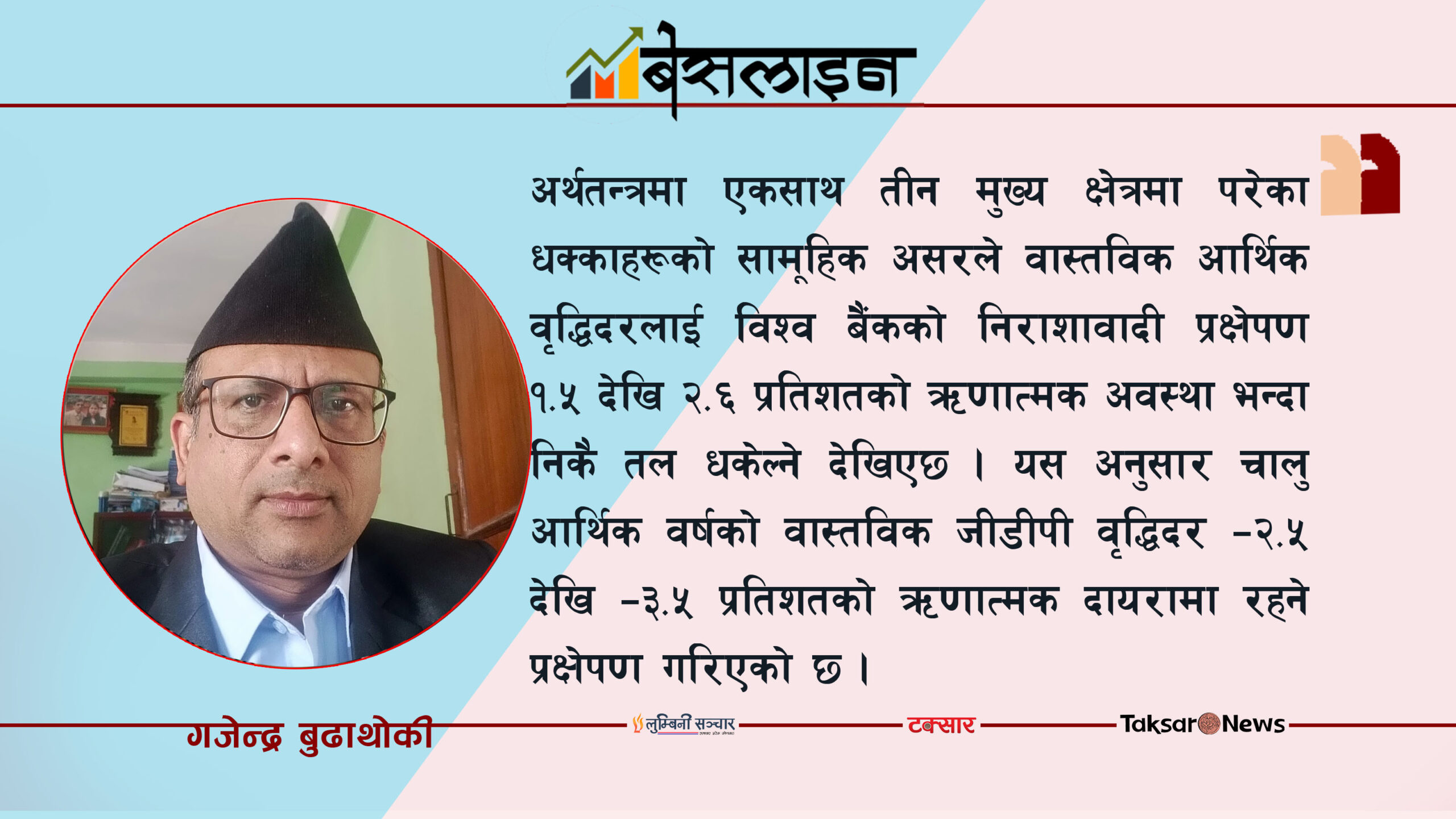 आ.व. २०८२/८३ मा नेपालको अर्थतन्त्रले गम्भीर संकुचन सामना गर्ने प्रबल सम्भावना छ ।