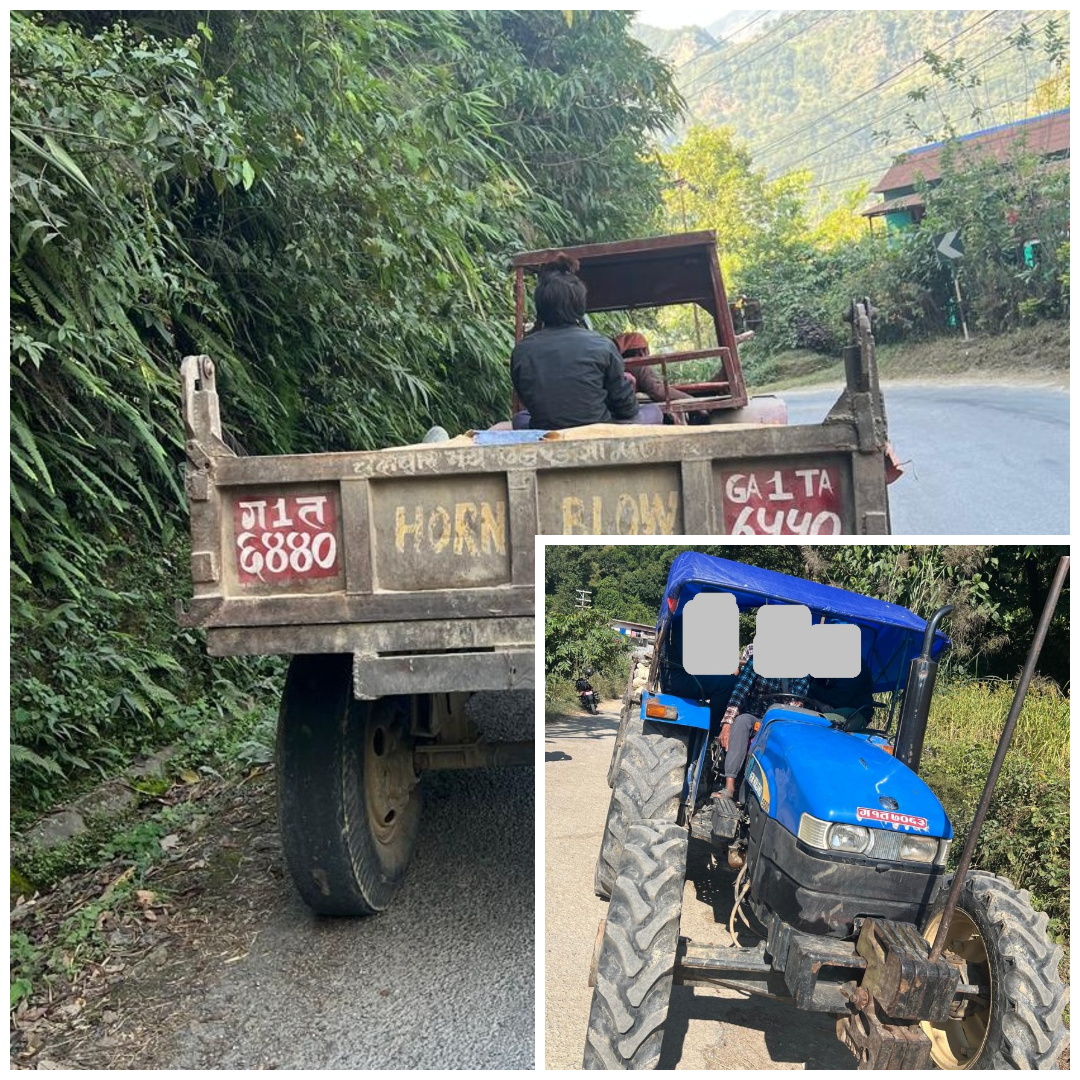प्रहरीका अनुसार स्याङ्जा पुतलीबजार नगरपालिका–३ पुतलीखेत आँधिखोला नजिकैबाट ग.१ त. ७०६३ नम्बरको ट्याक्टर ढुङ्गा ओसारपसार गर्दै गरेको अवस्थामा नियन्त्रणमा लिइयो। त्यस्तै, पुतलीबजार नगरपालिका–१० बर्जा स्थित सिद्धार्थ राजमार्गमा ग.१ त. ६४४० नम्बरको अर्को ट्याक्टर गिट्टी बोकेर ल्याइरहेको अवस्थामा समातिएको प्रहरीले जनाएको छ।