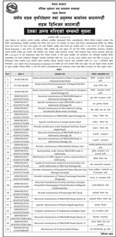 त्यसपछि सडक विभाग मातहतका कार्यालय रुग्ण ठेक्का तोड्नका लागि प्रक्रिया अगाडि बढाइएका थिए ।