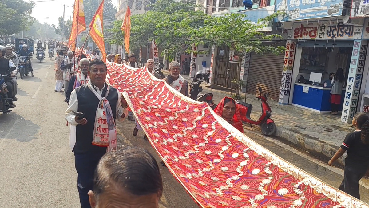 काठमाडाैँ । सीताराम विवाह पञ्चमीको अवसर पारेर जनकपुरधामस्थित जानकी मन्दिरमा १ सय ११ मिटर लामो चुनरी चढाइएको छ ।