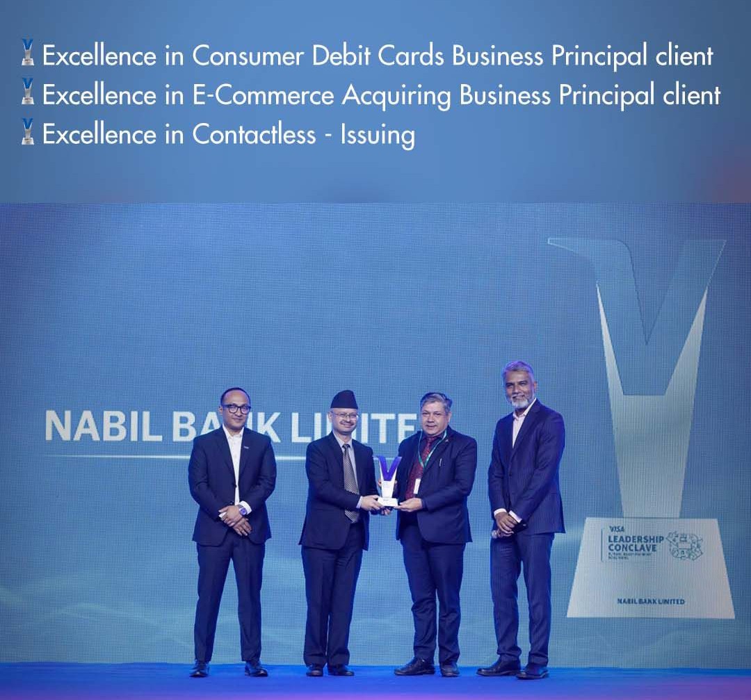 काठमाडौँ । नबिल बैंकले भिसा इन्टरनेशनलद्वारा प्रदान गरिने तीन वटा विधामा अवार्ड जितेको छ । बैंकले यस वर्ष एक्सिलेन्स इन कन्जुमर डेविट कार्डस्  बिजनेस प्रिन्सिपल क्लाइन्ट, एक्सिलेन्स इन कन्ट्याकलेस–इसुइङ र एक्सिलेन्स इन इ–कमर्श एक्वायरिङ बिजनेस प्रिन्सिपल क्लाइन्ट विधामा अवार्ड जितेकोे हो ।