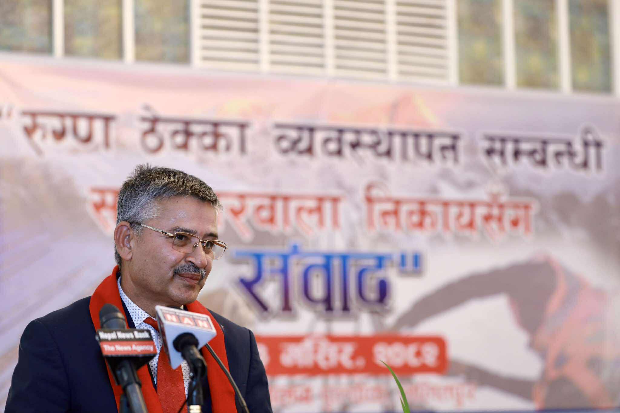 नेपाल पुर्वाधार पत्रकार समाजले नेपाल निर्माण व्यवसायी महासंघसँगको सहकार्यमा मंगलबार काठमाडौँमा आयोजना गरेको ‘रुग्ण ठेक्का व्यवस्थापन सम्बन्धी’ सरोकारवाला निकायसँग संवाद कार्यक्रममा उनले यस्तो बताएका हुन् ।