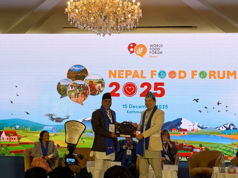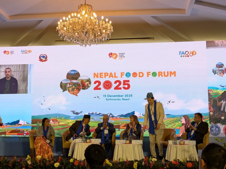 काठमाडौँ । नेपालको कृषिखाद्य प्रणालीलाई दिगो, समावेशी र नवप्रवर्तनमुखी बनाउने लक्ष्यसहित काठमाडौँमा नेपाल फुड फोरम २०२५ सम्पन्न भएको छ। एफएओ नेपाल, नेपाल सरकार र वर्ल्ड फुड फोरम (डब्लुएफएफ) नेपाल च्याप्टरकाे संयुक्त आयोजनामा सम्पन्न फोरमले नीति प्रतिवद्धतालाई व्यवहारिक, लगानीयोग्य र विस्तारयोग्य समाधानमा रूपान्तरण गर्ने स्पष्ट कार्यदिशा तय गरेको छ।