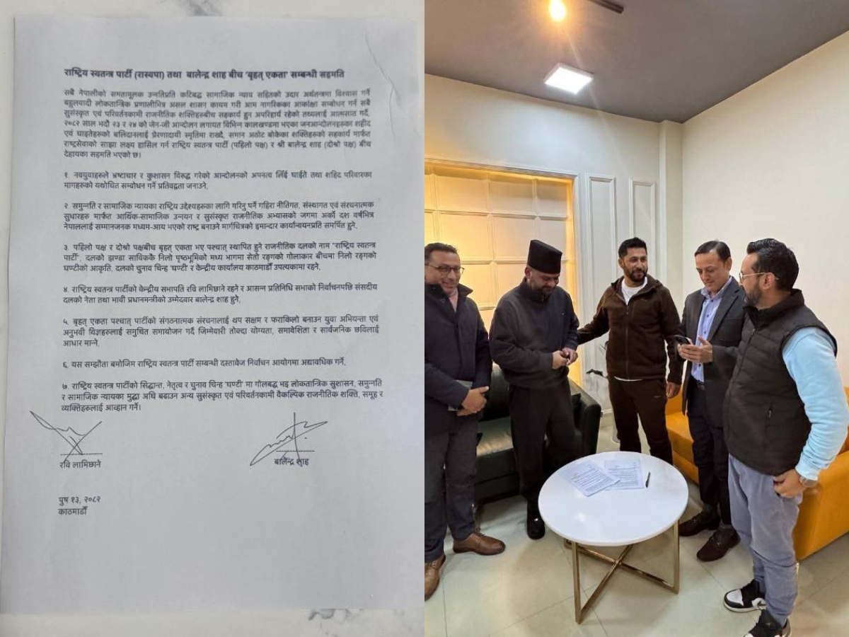 काठमाडौँ । राष्ट्रिय स्वतन्त्र पार्टीका सभापति रवि लामिछाने र काठमाडौँ महानगरपालिकाका मेयर बालेन्द्र शाहबिच सात बुँदे सहमति भएको छ ।
