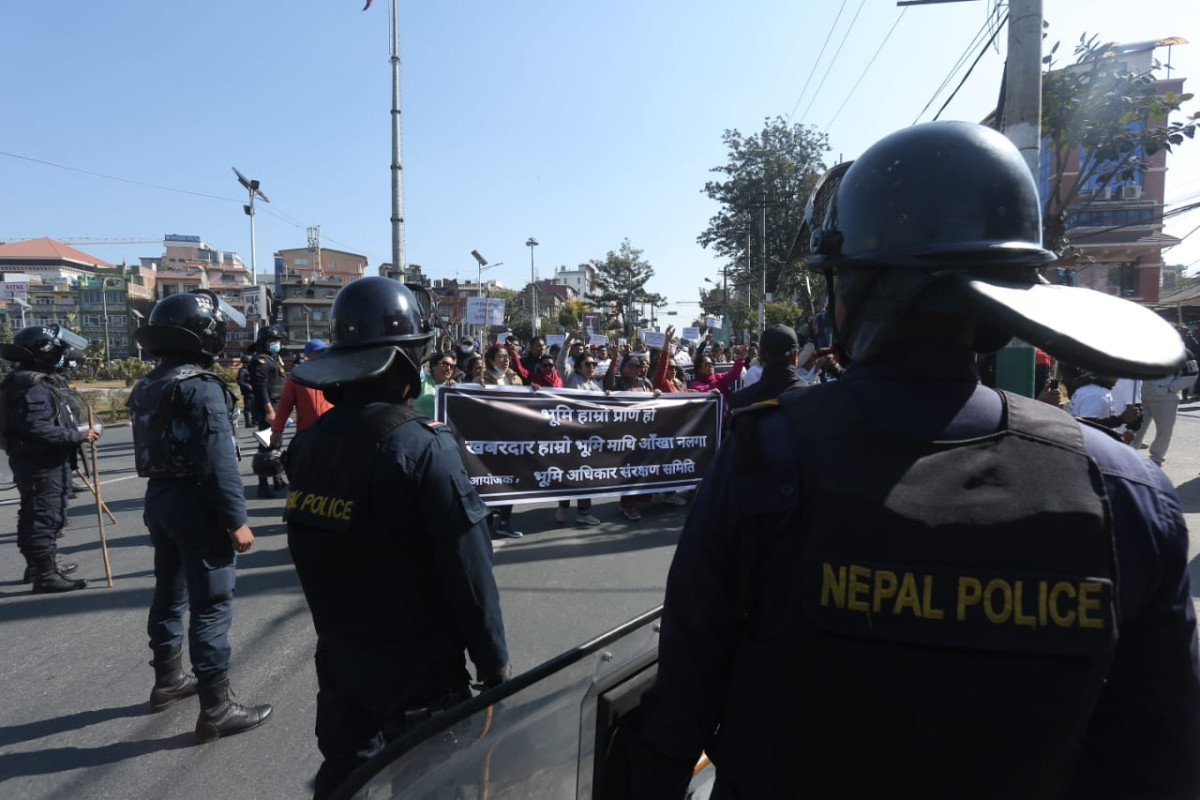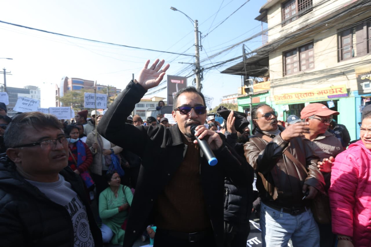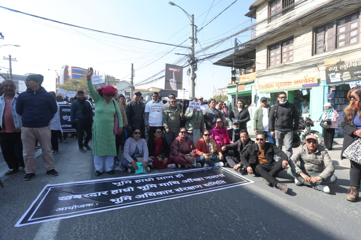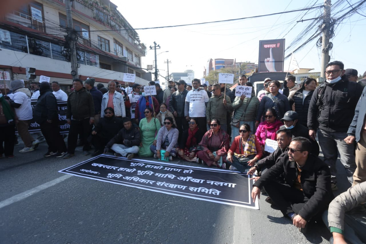 गैरन्यायिक खोला तथा सडक मापदण्ड पीडित संघर्ष समितिले मुद्दालाई अग्राधिकार दिएर छिटो निर्णय गर्न माग गर्दै बिहीवार काठमाडौंको माईतीघरमा विरोध प्रदर्शन गरेको हो ।