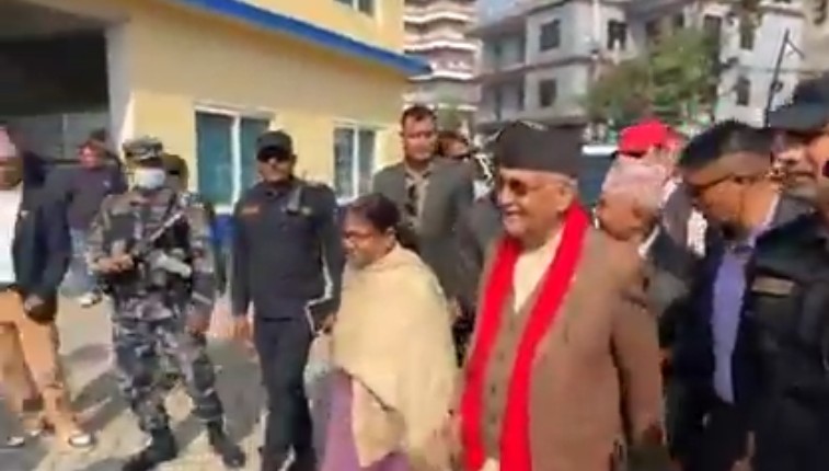 अध्यक्ष ओलीले आफ्नो गृह जिल्ला झापाको निर्वाचन क्षेत्र नम्बर ५ बाट प्रतिनिधिसभा सदस्य निर्वाचनका लागि मनोनयन दर्ता गराउँदै छन्।