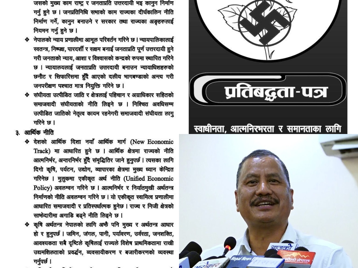 काठमाडौँ । विप्लव नेतृत्वको नेपाल कम्युनिस्ट पार्टीले आफ्नो चुनावी प्रतिबद्धता पत्र सार्वजनिक गरेको छ ।