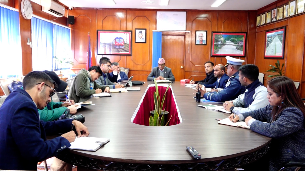 उनले ट्राफिक प्रहरीको तर्फबाट सचेतना अभिवृद्धि र सहजीकरणका लागि कार्यशाला (वर्कसप) सञ्चालन गर्ने प्रस्ताव आएको र त्यसमा मन्त्रालयको सहभागिता रहने पनि स्पष्ट पारे। साथै बैठकमा केही नीतिगत सुधारका विषयमा समेत छलफल अघि बढाइएको उनले जानकारी दिए ।