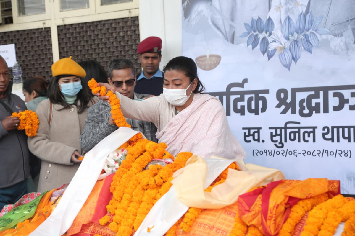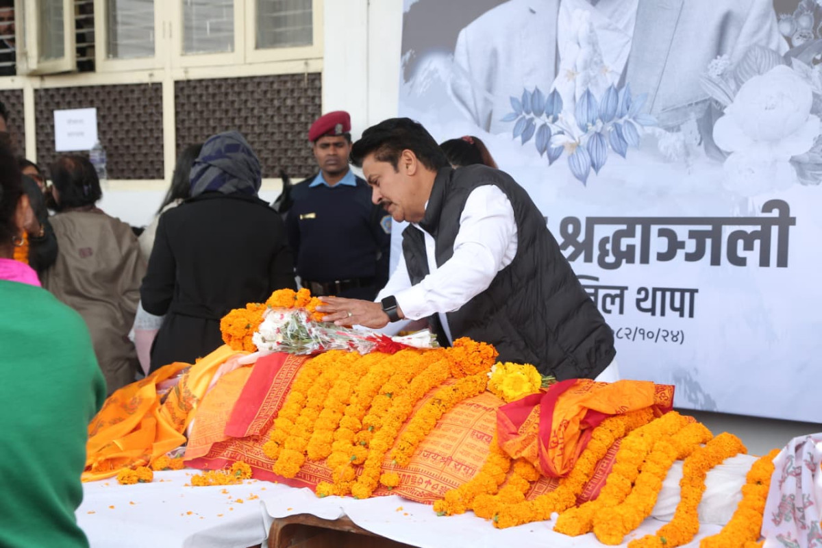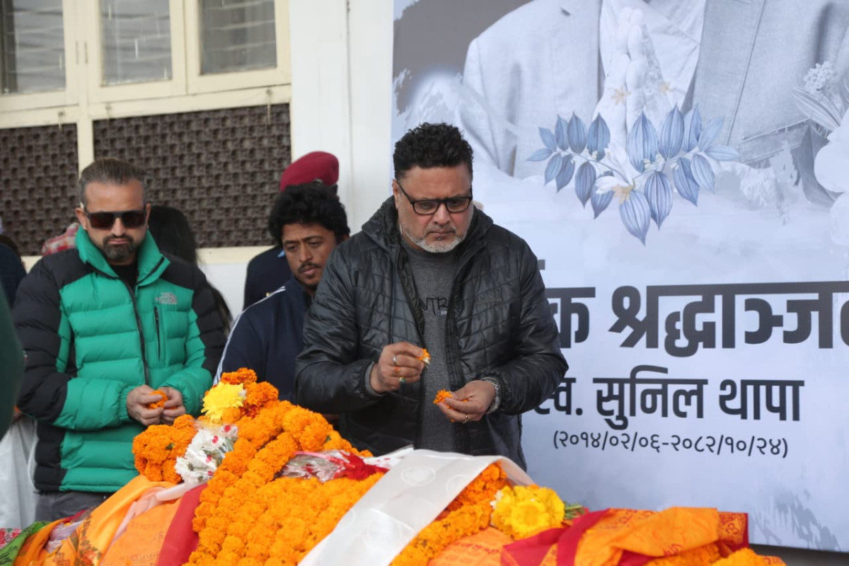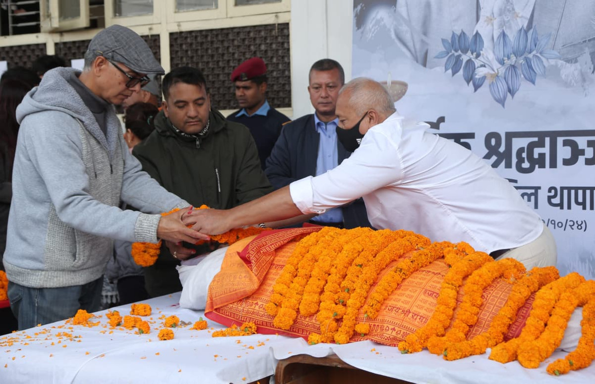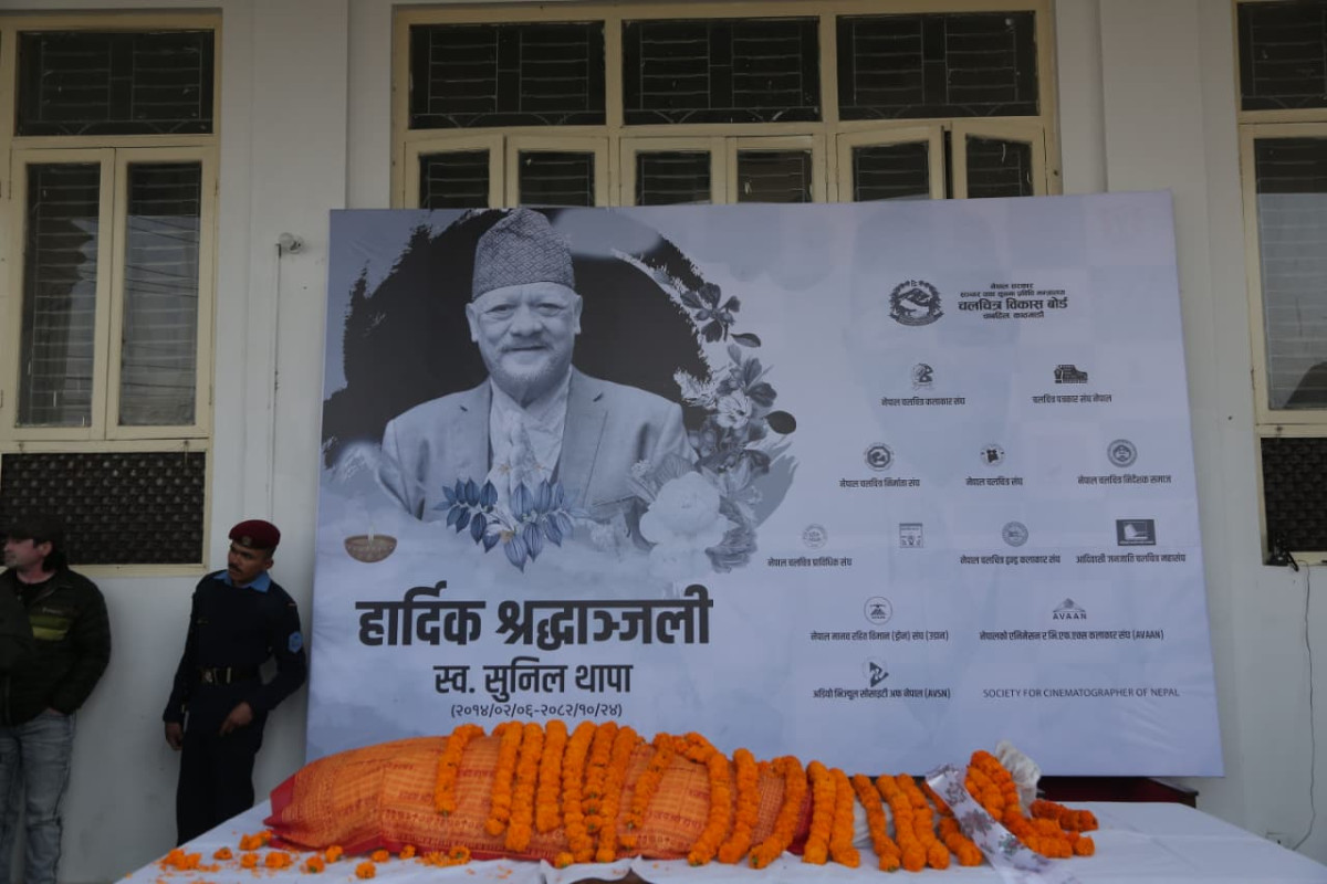 काठमाडाैँ । नेपाली चलचित्र जगतका वरिष्ठ तथा लोकप्रिय अभिनेता सुनिल थापाको पार्थिव शरीर अन्तिम श्रद्धाञ्जलीका चलचित्र विकास बोर्ड परिसरमा राखिएको छ ।