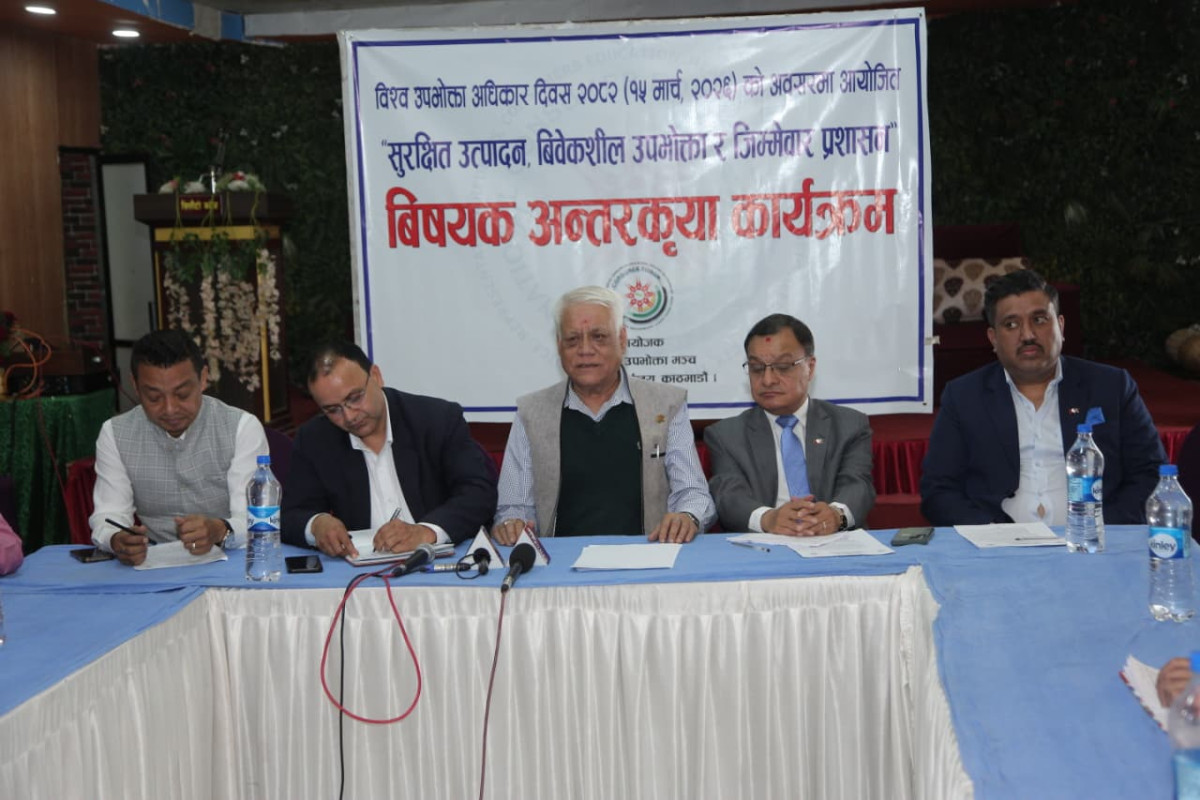 कार्यक्रममा बोल्दै उद्योग वाणिज्य सङ्घ काठमाडौँका अध्यक्ष दिनेश श्रेष्ठले उपभोक्ताहरुको हित संरक्षणका लागि विद्यमान कानूननै पुनर्लेखन गर्न आवश्यक रहेको बतााए । उनले कानून कार्यालयन गर्ने निकायले नै अनुगमनको काम पनि गर्ने व्यवस्था विद्यमान ऐनमा भएकाले त्यसलाई परिमार्जन गर्न पनि सो सम्बन्धि कानूनको पुनर्लेखन आवश्यक रहेको तर्क गरे ।