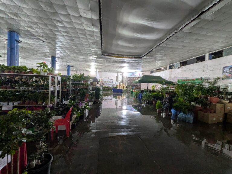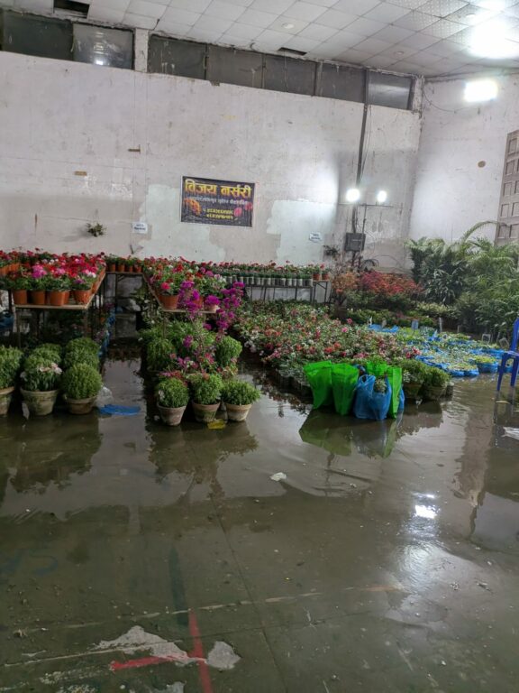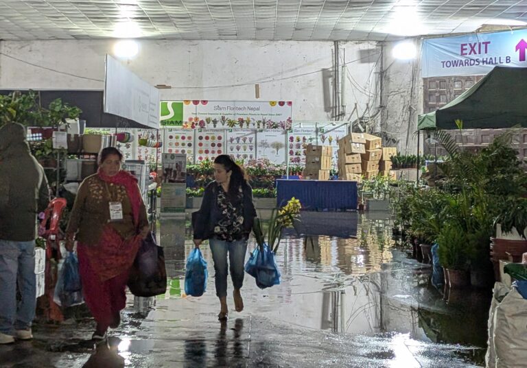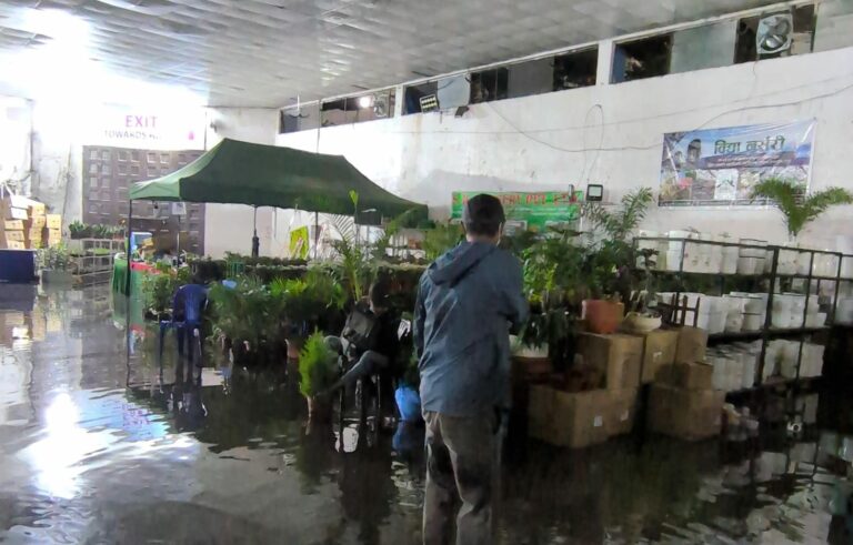 वर्षापछि काठमाडौँको भृकुटीमण्डप प्रदर्शनी हल जलमग्न, फ्लोरा एक्स्पोमा व्यवसायी मारमा