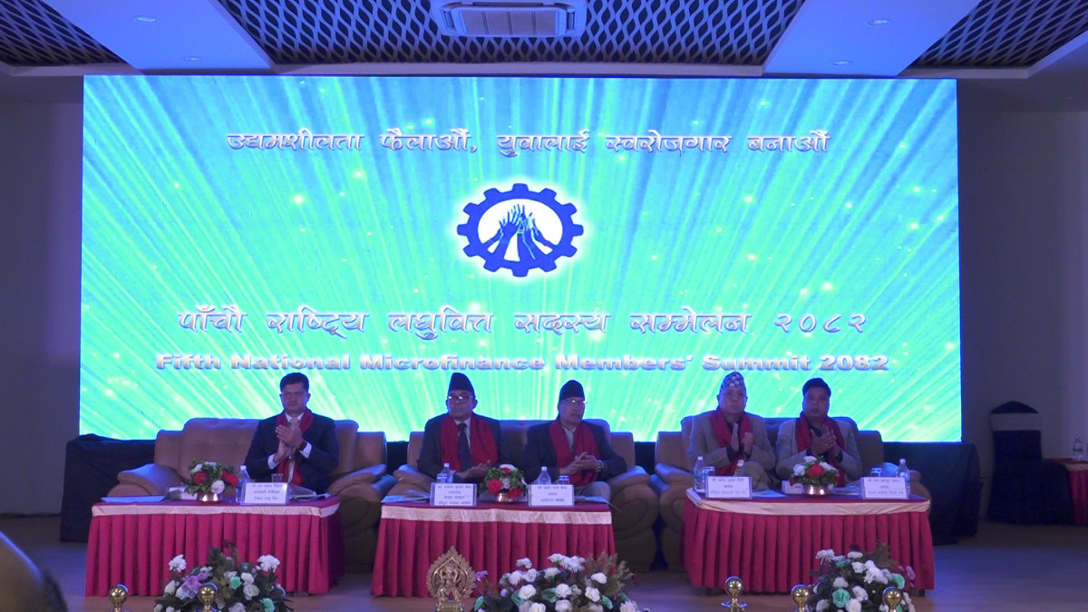 काठमाडाैँ । ५ औँ राष्ट्रिय लघुवित्त सदस्य सम्मेलन राजधानीमा शुरु भएको छ । उद्यमशीलता फैलाऔँ, युवालाई स्वरोजगार बनाऔँ भन्ने उद्देश्यका साथ आइतबारबाट राजधानीमा भएको ५ औँ राष्ट्रिय लघुवित्त सदस्य सम्मेलन शुरु भएको हो ।