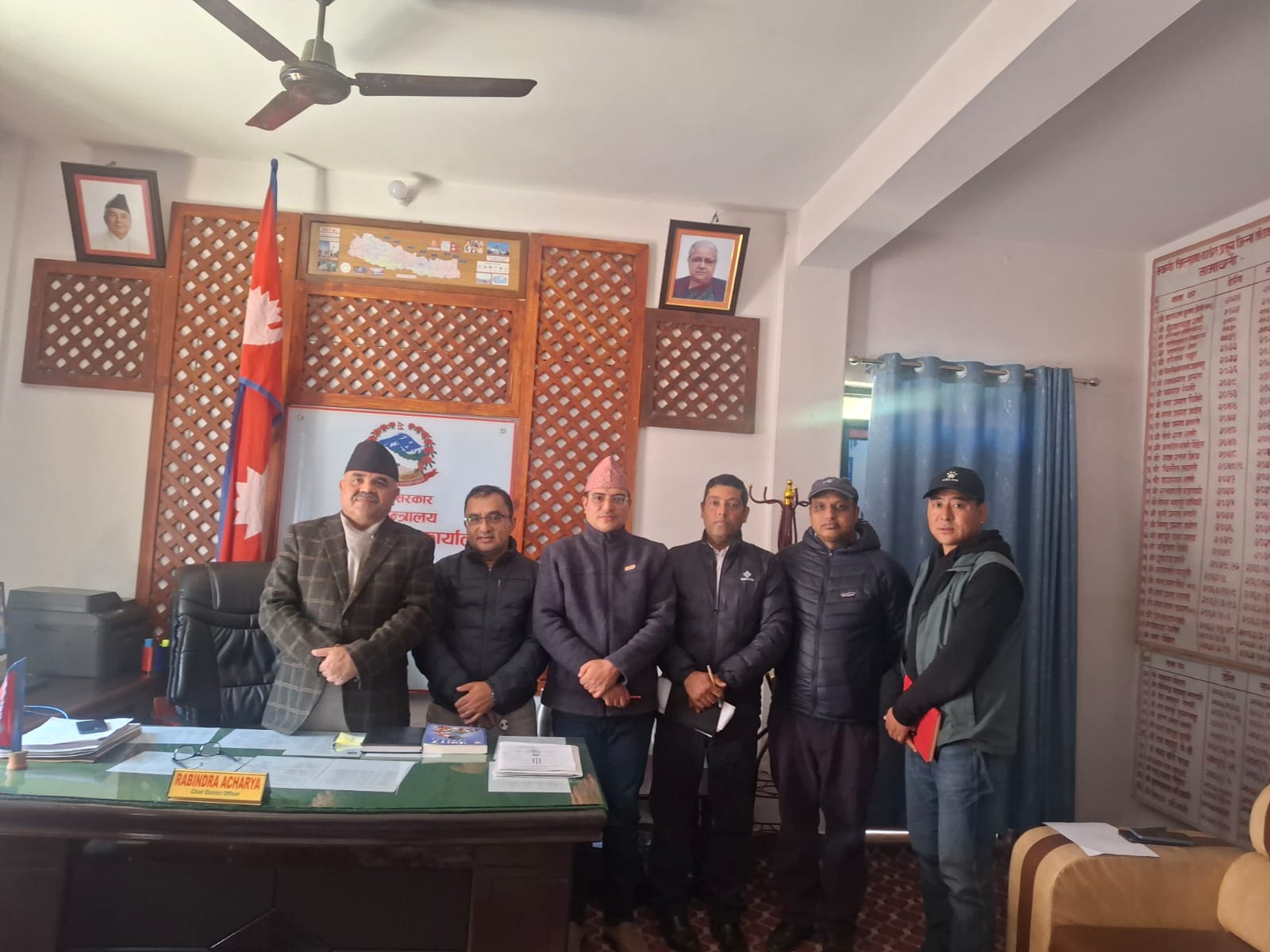 जिल्ला प्रशासन कार्यालयमा आयोजित छलफलमा प्रमुख जिल्ला अधिकारी आचार्य, पूर्वाधार विकास कार्यालय म्याग्दीका कार्यालय प्रमुख डा. महेन्द्रबहादुर बानियाँ, सहायक प्रमुख जिल्ला अधिकारी कुलप्रसाद आचार्य, निर्माण व्यवसायीका प्रतिनिधि सोमबहादुर थकाली तथा सम्बन्धित कार्यालयका अन्य अधिकारीहरूको उपस्थिति रहेको थियो।