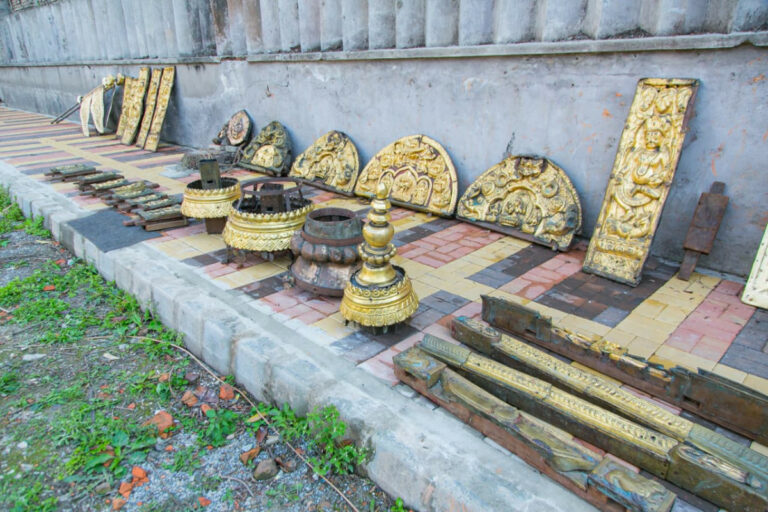 तस्बिरहरूमा देख्न सकिन्छ कि रथका विभिन्न भागमा बुद्ध, लोकेश्वर र अन्य देवी–देवताका आकृतिहरू कुँदिएका धातुका पाताहरू जडान गर्न ठिक्क पारिएको छ । यी कलाकृतिहरूले नेवार समुदायको ऐतिहासिक धातु कला र धार्मिक आस्थालाई प्रतिविम्वित गर्छन् ।