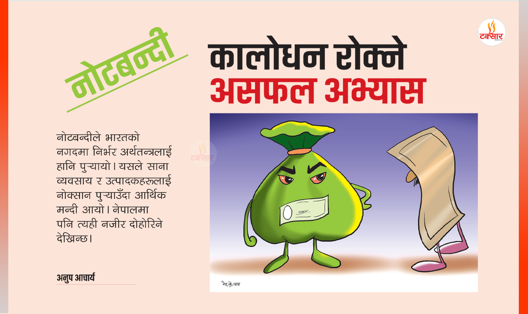नोटबन्दीले भारतको नगदमा निर्भर अर्थतन्त्रलाई हानि पु¥यायो । यसले साना व्यवसाय र उत्पादकहरूलाई नोक्सान पु¥याउँदा आर्थिक मन्दी आयो । नेपालमा पनि त्यही नजीर दोहोरिने देखिन्छ ।