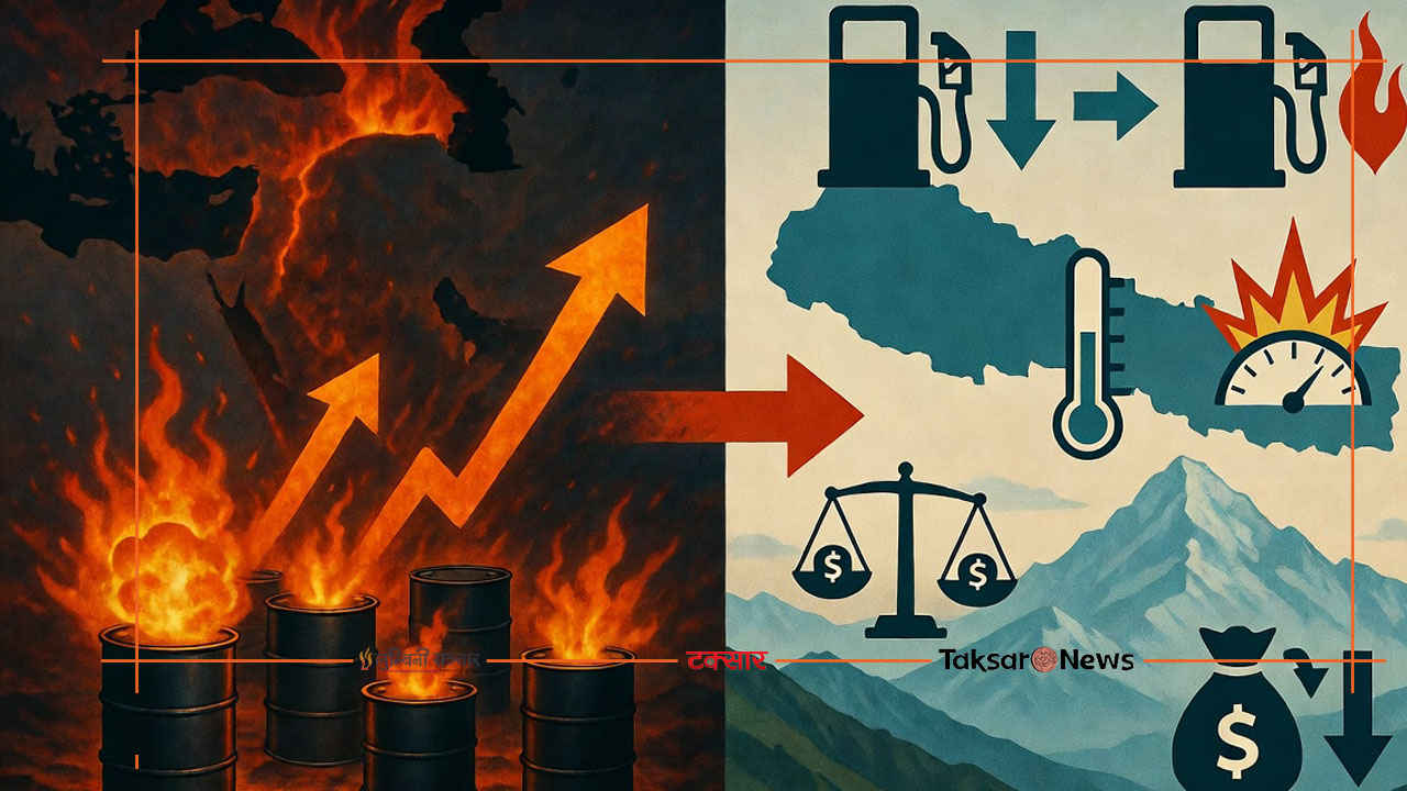 तेस्रो खाडी युद्धले सामरिक जलमार्ग होर्मुज समुद्री गल्लीअवरुद्ध पार्दा विश्वव्यापी तेलको मूल्य प्रति ब्यारेल १२० डलर नाघेको बेला, नेपालको शतप्रतिशत पेट्रोलियम आयात निर्भरता र खाडीबाट आउने ५७ प्रतिशत रेमिट्यान्सको प्रवाहमा असर पार्ने जोखिम बढाएको छ।