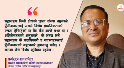 धर्मराज सापकोटा,ब्रोकर्स एसोसिएसन अफ् नेपालका निवर्तमान अध्यक्ष हुन् । उनी ३० वर्षदेखि पुँजीबजार,कर,लेखापरीक्षण,पर्यटन र कृषि